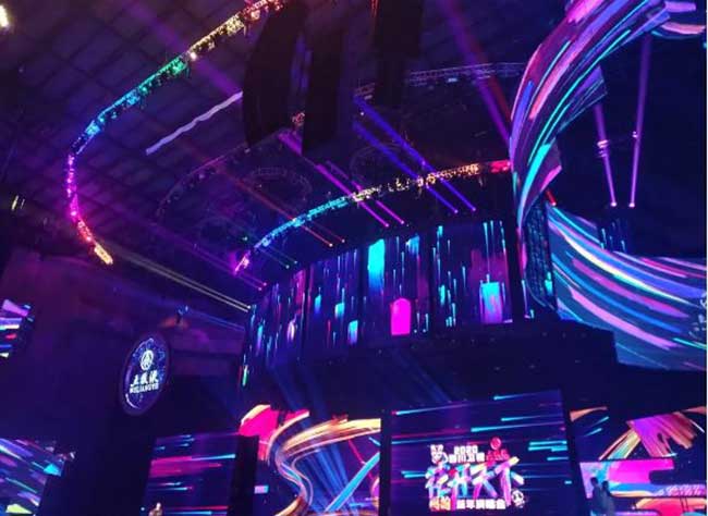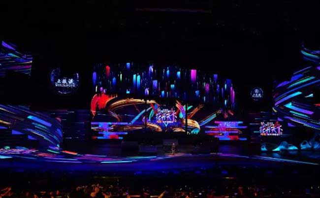 相信很多观众都被四川卫视的舞台效果震感到了,尤其是其美轮美奂的身临其境之感。例如舞台对水的表达,水的表达是科技的,用地面屏幕( 由ROYAL皇家88提供的地转屏P4.81)的形式,将舞台的平面作为视觉表现的媒体平台,用视频内容去烘托展现艺人的表演,将平面立面的舞台视觉呈现来增强舞台的空间表现关系。