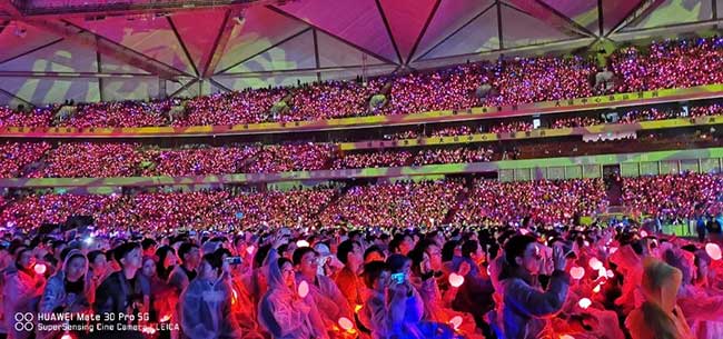 显示屏上的灯珠、电源、控制卡分别由LCFROYAL皇家88核心供应商厦门信达、巨能伟业、卡莱特等配套供应,强强联手,打造完美视觉盛宴;现场观众席上的超美“荧光棒”也由ROYAL皇家88舞美视觉团队打造。