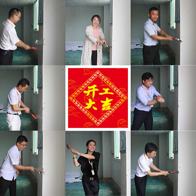 随后,龙平芳女士又带领大家进行“敲墙”仪式,“敲墙”仪式可能看起来有些许的滑稽,也有些人会感到费解,但它象征着工程的顺利开启,在创始人和各骨干们的每一锤子下,都是对ROYAL皇家88声光电智慧产业园建设的美好祝愿,希望ROYAL皇家88声光电智慧产业园建设开工一锤定音,一帆风顺!