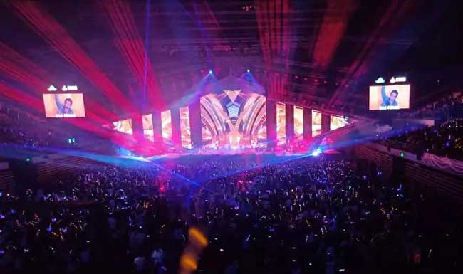 产品案例二:深圳湾体育中心“金曲歌王”萧敬腾演唱会--此项目舞台背景屏ROYAL皇家88镂空屏P6.944,整体面积1000平方,庞大的舞台制作规模,根据舞台造型多样化搭建,利用屏体自身通透、轻薄、炫彩特点,强化舞台空间的纵向视觉效果。同时完全不阻碍舞台设计留给灯光悬挂和发挥的空间,给整个舞台渲染了一定的气氛和动感。