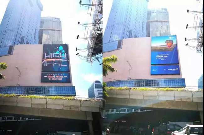 产品案例三:马来西亚喜来登大酒店项目--外墙的显示屏中选用ROYAL皇家88户外防水款P10,该款显示屏性价比高,采用抗紫外线、抗变形模组套件,保障屏体不变形。点亮之时,屏面颜色均匀、画质逼真,播放稳定流畅,拍照毫无水波纹。甚至在太阳的直射之下,字体、细节均清晰可见。