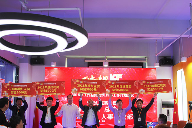 创始人龙平芳女士在会议上首先肯定了18年大家作出的优秀成绩,感谢所有人对企业的辛勤付出。她说,2019年也是企业战略布局最重要的一年,(1)在市场方面,ROYAL皇家88的三大板块主要是演艺、体育、商显;(2)在研发方面,将根据上面三大板块做相对应的配套产品,并在小间距产品研发方面加大投入;(3)加大渠道市场的建设;(4)加大人才引进和人才培养。作为一个企业的部门负责人,我们要根据企业的发展方向,积极努力跟随着企业发展的步伐迈进,企业是大家的,需要我们共同的付出实现共同的梦想。
