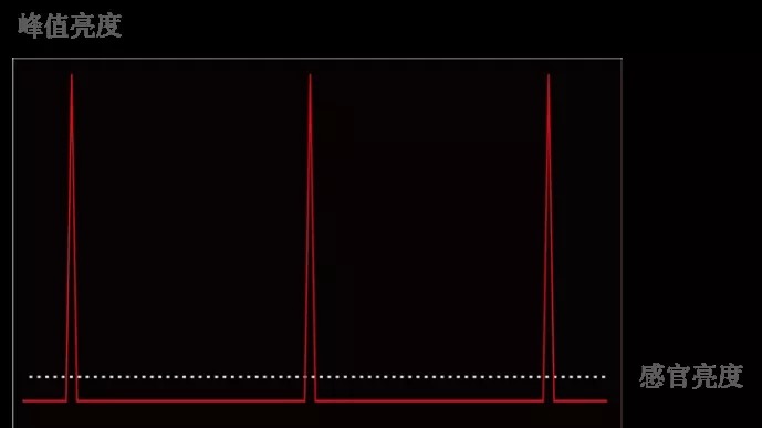 在PM被动驱动方式下,灯珠是逐行亮灭的,一个小的显示区域里,同一时间只有一行灯珠是亮的,其他行灯珠都是灭的。这就好比用一支激光笔快速、反复扫过你的眼睛,太快了,以至于你认为是常亮的,并且灯珠的瞬间峰值亮度可以达到感官亮度的数十倍,所以你会感觉很刺眼,即使LED屏的亮度调得很低。