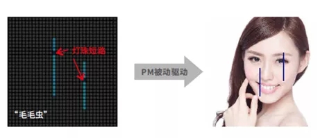 如果有1颗灯珠损坏短路,就会导致整行或整列的灯珠常亮,俗称“毛毛虫”。
