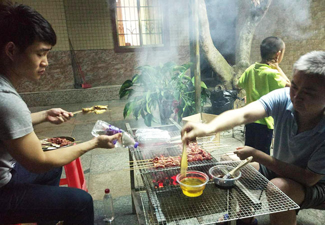 泡一泡温泉,洗一洗旅途的疲劳,回到我们临时的家,兴致勃勃地开始第二场重头戏。天公作美,晴空无云,也没有月光的添乱,于是就见到了久违的星空,听着四周传来的各种虫吟,看着脚边偶尔爬过的千足,和跳过的蚱蜢,颇有些重回童年的感觉。凉风习习,空气清新,烧烤炉散发出的热量,已完全可以忽视了。
