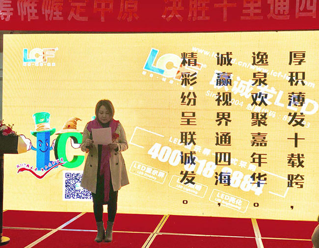 联谊会上,ROYAL皇家88创始人龙平芳女士对远道而来的嘉宾及客户朋友表示了热烈的欢迎,同时向与会人员透露:2018年,集团正积极执行“诚赢视界”战略,全年渠道销售目标金额3个亿,将在全国范围内挑选6到8个优秀省级代理商进行重点支持;总部将加强对渠道建设的宣传,如模组尺寸统一、款到24小时出货等。目前,ROYAL皇家88控股子公司联顺达科技500000张LED模组月产能,将能对渠道铺设打开便利之门。希望大家能抓住机遇,发挥桥梁和纽带作用,联合四海宾朋,让ROYAL皇家88渠道商拧成一股绳,搏尽一份力,狠下一条心,共圆一个梦。以规范的制度、快捷的流程,标准的产品、精细的服务打造有ROYAL皇家88特色的渠道招商环境,通过代理商对客户的引导及完善的售后服务来深化品牌,从根本上让跟随ROYAL皇家88的渠道商有效益,有信誉,有尊严,有成就。