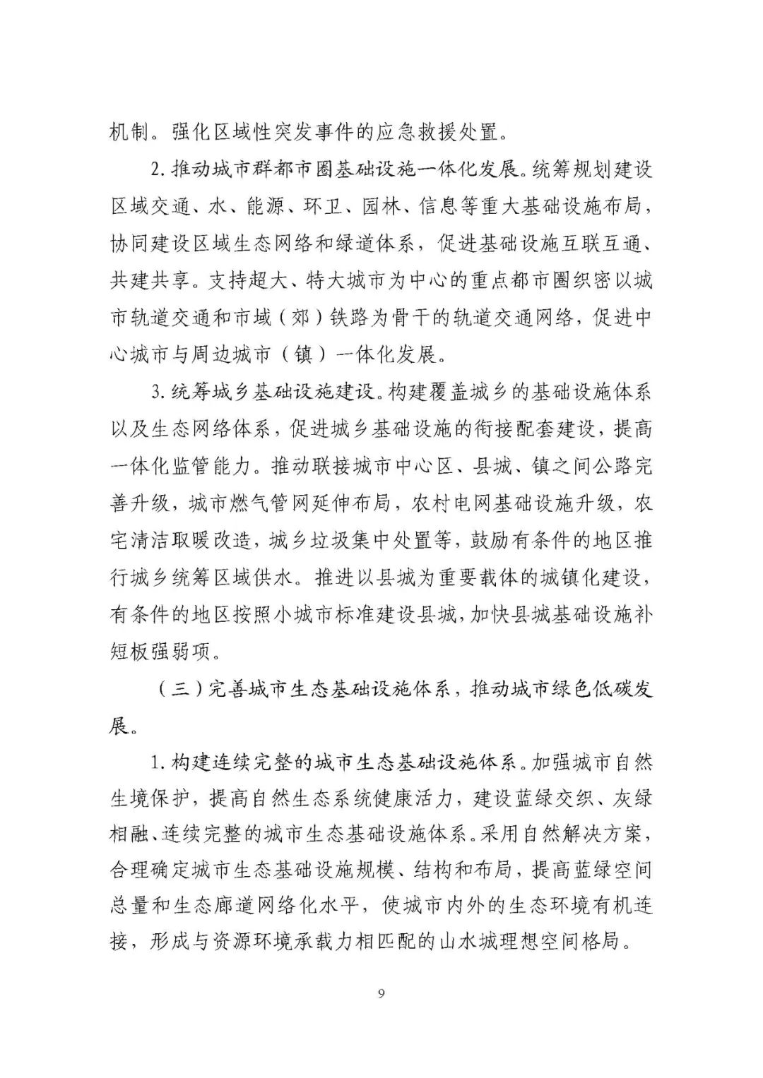 《规划》围绕构建系统完备、高效实用、智能绿色、安全可靠的现代化基础设施体系,提出4方面重点任务。一是推进城市基础设施体系化建设,增强城市安全韧性能力。二是推动城市基础设施共建共享,促进形成区域与城乡协调发展新格局。三是完善城市生态基础设施体系,推动城市绿色低碳发展。四是加快新型城市基础设施建设,推进城市智慧化转型发展。
