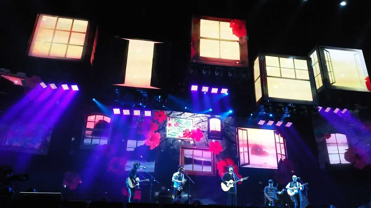 摇滚的力量不是一个人的力量,举办方深知光影配合对氛围的渲染有多重要,此次选用的ROYAL皇家88P3.91LED租赁屏,采用多屏设计,高清细腻,显示效果卓越;低亮度下显示灰度均匀,显示的一致性良好;整体亮度降至20%时仍能实现完美灰度表现。暗夜之下,舞台呈现出层层叠叠的效果,真正提升舞台三维空间的立体感与真实感,逼真唯美的形态,使节目的舞台张力显露无疑。