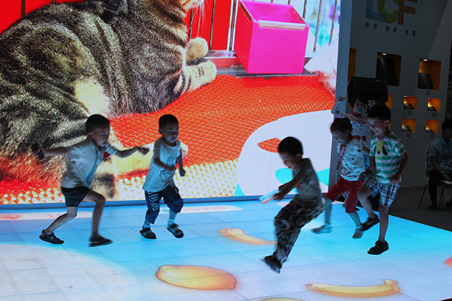 童真、童趣,在ROYAL皇家88展区里,LED屏真正实现“一屏多用”,互动地砖屏成为了孩子们的游乐场。