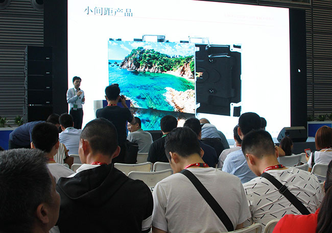 在新产品发布会上,ROYAL皇家88研发总监向大家介绍了小间距新品“追梦”系列对比COB封装的优势及行业发展的的现状。全场座无虚席,现场气氛热烈。
