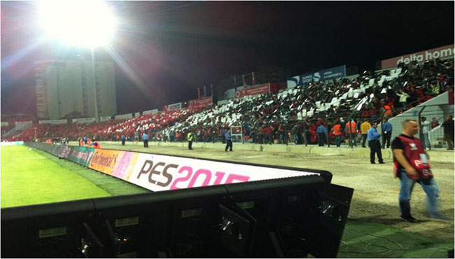伴随着它的知名度越来越广,大众的参与度越来越高,场馆的设计越来越高大上,比赛细则越来越规范化……,利用赛事而进行的广告费用也是水涨船高,其中作为广告的媒介也迎来了它的更新换代。从有限的各类信息搜集里,我们能够知道,在早期的体育赛事中,球场边的广告方式较为简易,基本上以文字为主。一个赞助商固定一种广告的样式,锁定一块广告牌,形式单一。如果需要更换广告样式则需要重新制作广告牌。尽管如此,作为世界第一运动的足球,依然吸引很多赞助商,将品牌以这种形式进行推广,为足球市场商业开发奠定了一定的基础,后经过发展,新一代广告神器——LED显示屏出现了!!!