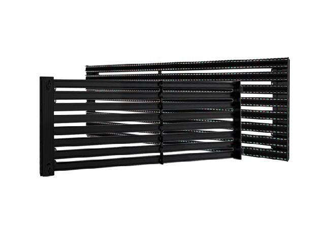 ROYAL皇家88LED格栅屏(箱体尺寸500x1000mm)是一款重量轻、结构简捷、全防水的新类型显示设备; 它的组装及其方便,由于屏体部分中空,风阻减少,并且能节省结构费用,通风率高达 60%,可紧贴墙面安装;高强度抗老化面料, IP66的防护等级,能经受任何恶劣环境考验;RGB深层灰度处理,色彩丰富油腻,画面自然流畅。适用于酒吧、剧场剧院、 多功能展示厅、咖啡厅、酒店、舞台演出、音乐厅、商业大厦、机场、车站、大型商场等场所。