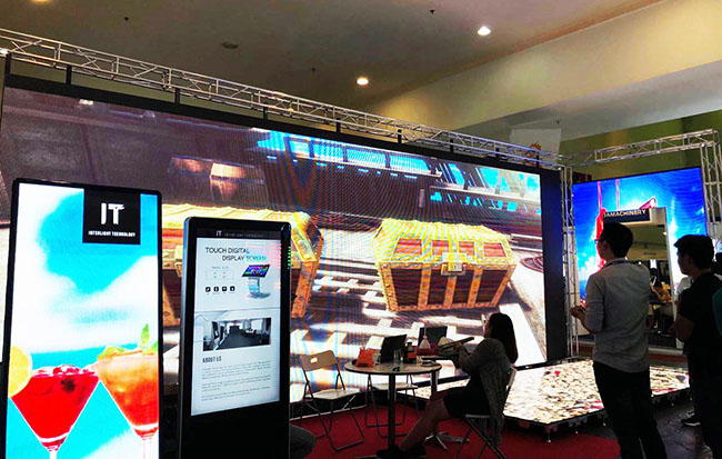 横跨整个展位的舞台租赁屏,色彩艳丽、张扬大气,具备很强的观赏性。人屏互动打破传统游戏限制,视野开阔,让受众充满了参与感和亲切感,吸引参展观众流连忘返。